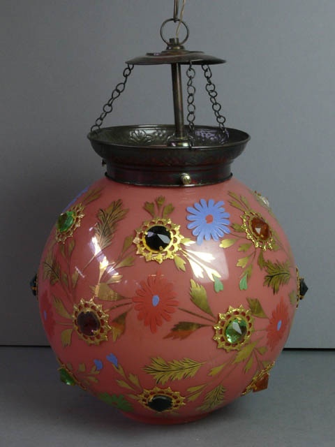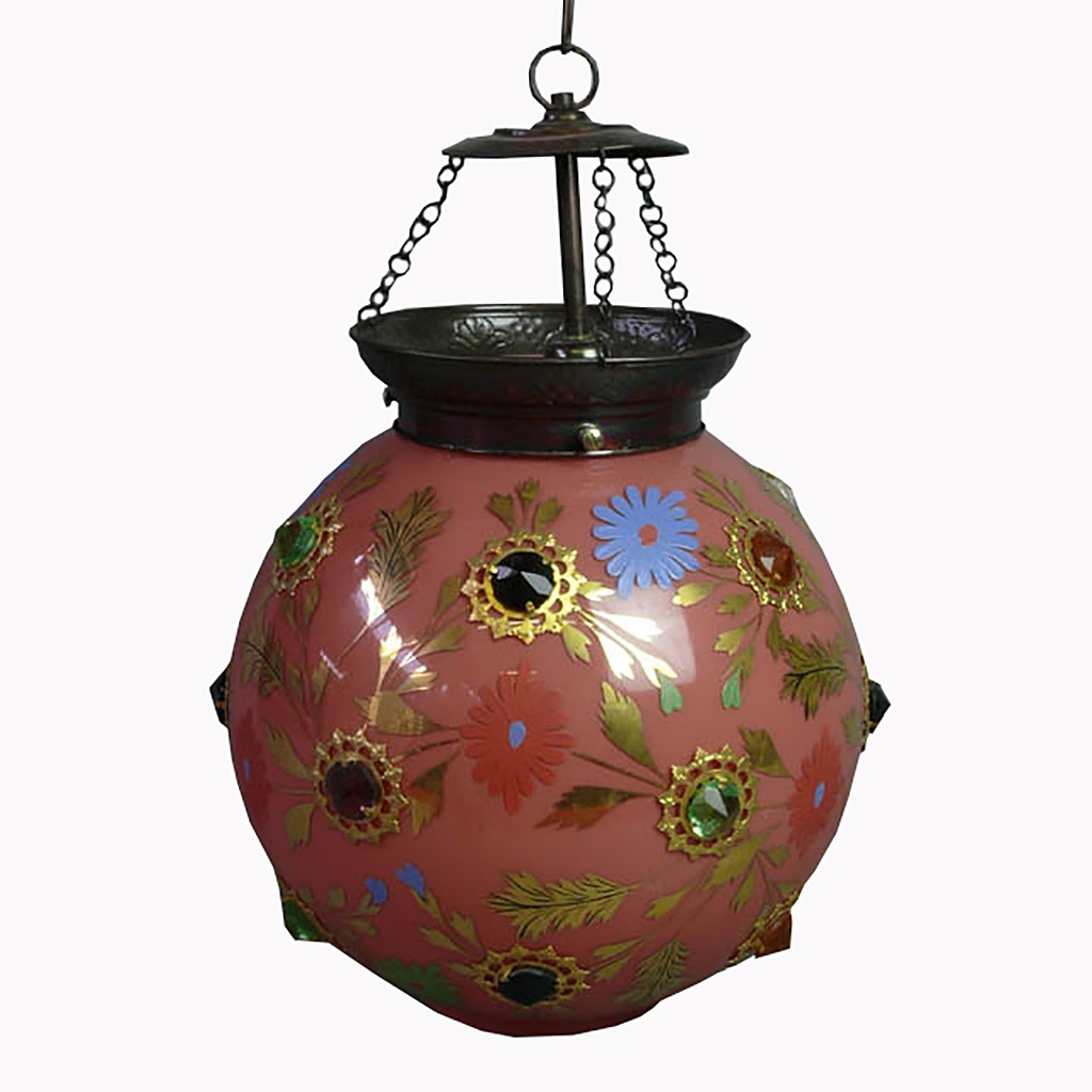 FLORAL DECORATED PINK GLASS PENDANT LIGHT 27 CM (X2)