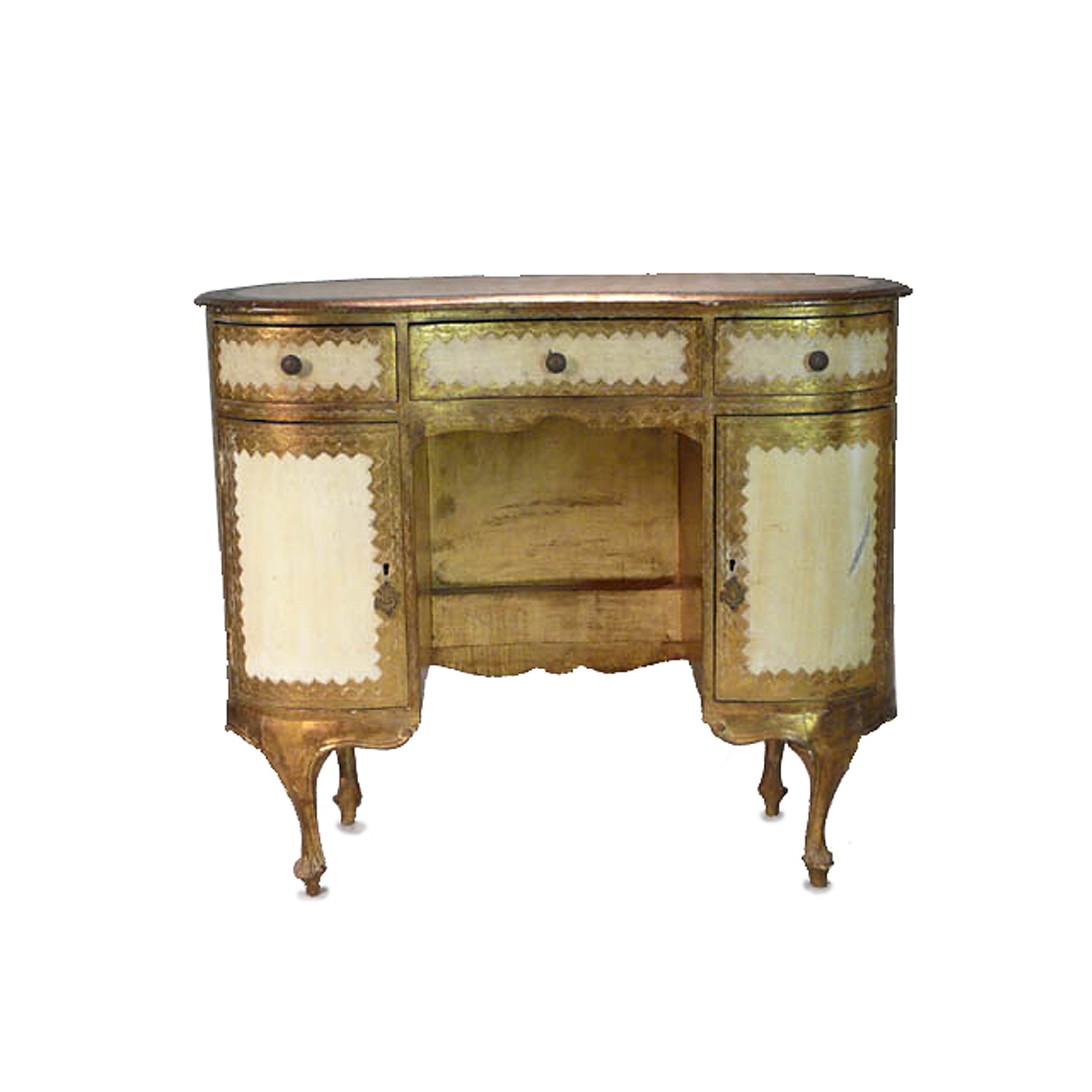 FLORENTINE DRESSING TABLE KIDNEY SHAPE CREAM AND GOLD 78 CM HIGH X 92 CM WIDE