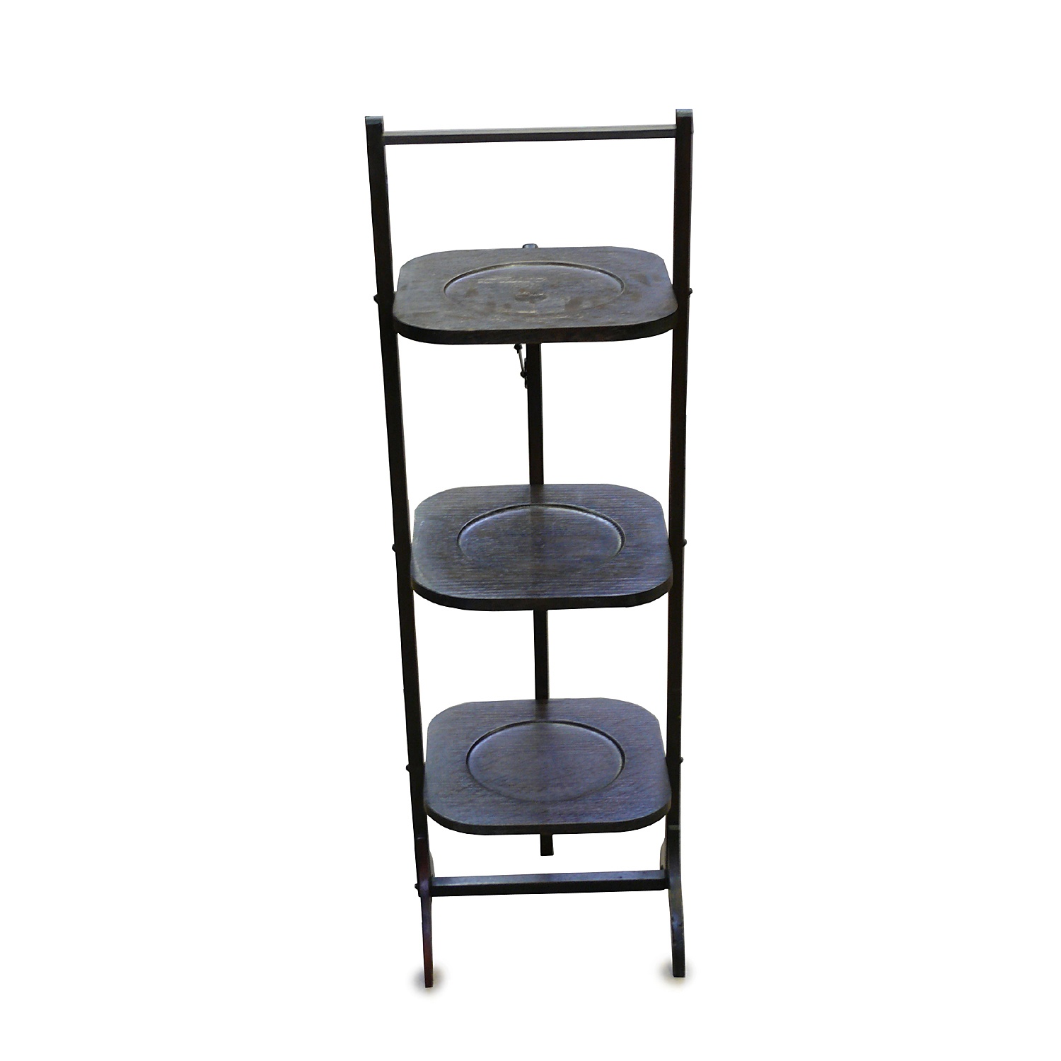 FOLDING WOODEN CAKE TABLE / STAND THREE TIER OAK 87 CM HIGH