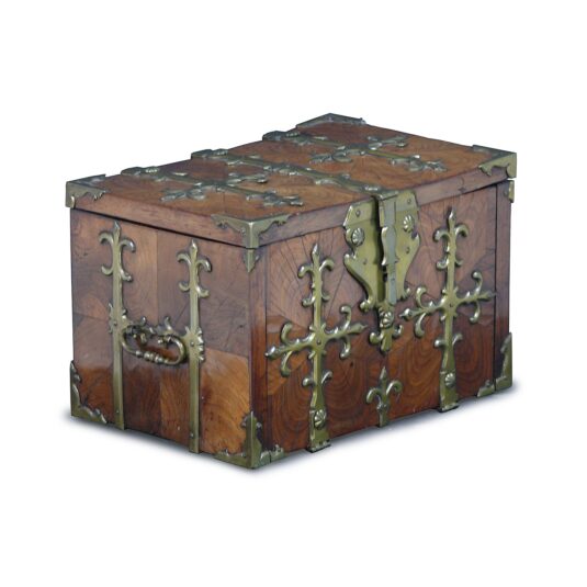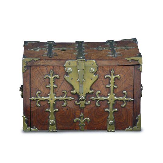 FRANCO - FLEMISH STRONGBOX KINGWOOD WITH ORNATE BRASS BRINDING AND HANDLES 22 CM HIGH 34 CM WIDE 24 CM DEEP