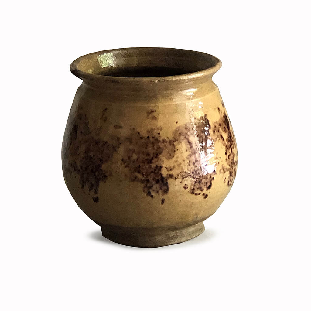 FRENCH AMBER AND BROWN STIPPLED CONFIT JAR 15 CM HIGH