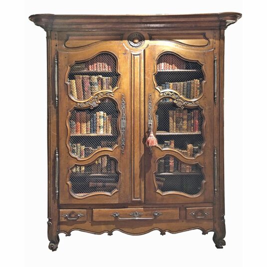 FRENCH BIBLIOTEQUE / BOOKCASE PROVINCIAL CARVED OAK WITH OPEN MESH DOORS CIRCA 1760 200 CM HIGH 165 CM WIDE
