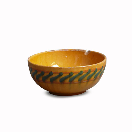 FRENCH BOWL AMBER GLAZED EARTHENWARE WITH GREEN STRIPED RIM (X5)