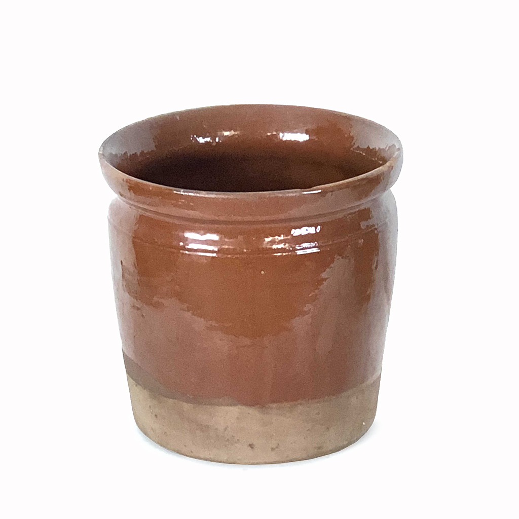 FRENCH BROWN GLAZED CONFIT JAR 16 CM HIGH