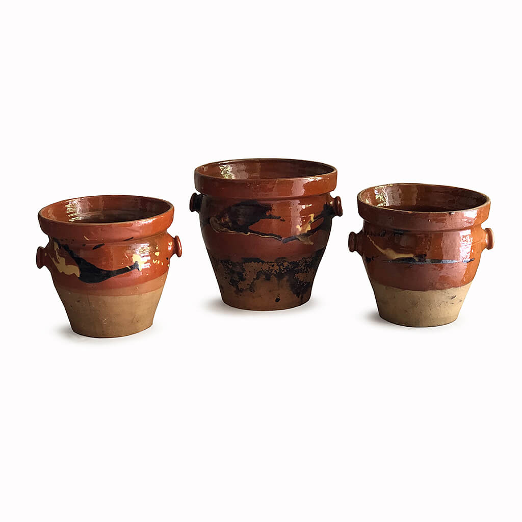 FRENCH BROWN MARBLED EARTHENWARE JAR 19 CM HIGH (X3)