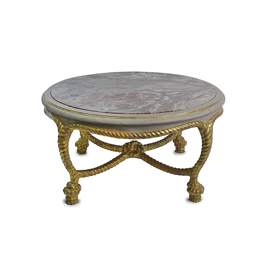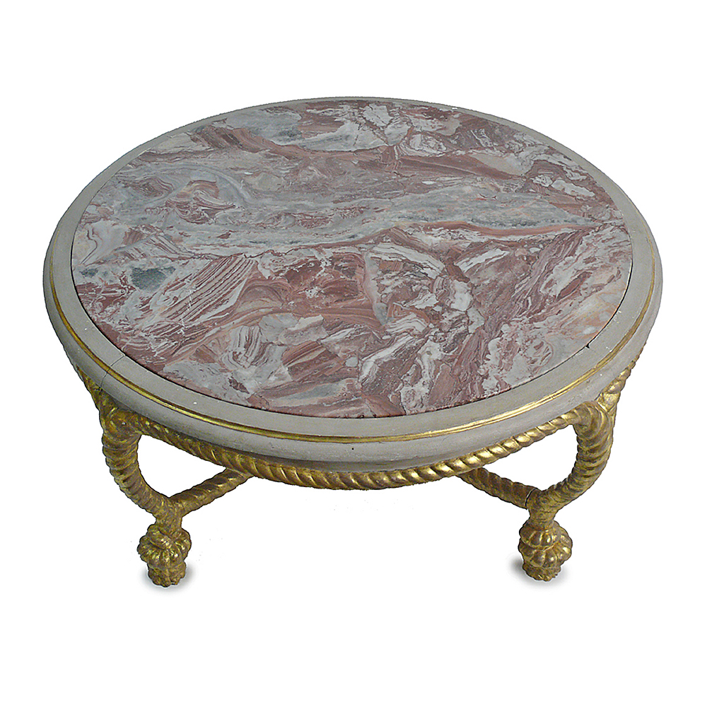 FRENCH CIRCULAR COFFEE TABLE CARVED AND GILDED ROPE TWIST FRAME WITH A BRECCIA ROSSO MARBLE TOP A.M.E FOURNIER CIRCA 1920 47 CM HIGH 90 CM DIAM.