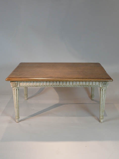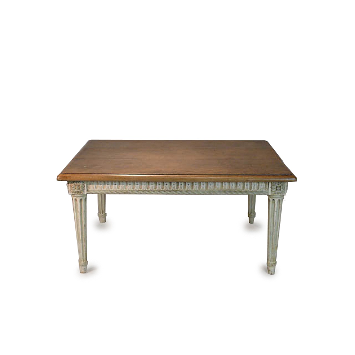 FRENCH CREAM COFFEE TABLE WITH A LIGHT WOOD TOP 1'7/i HIGH 3'2/i WIDE 2'5/i DEEP 48 CM X 97 CM X 74 CM