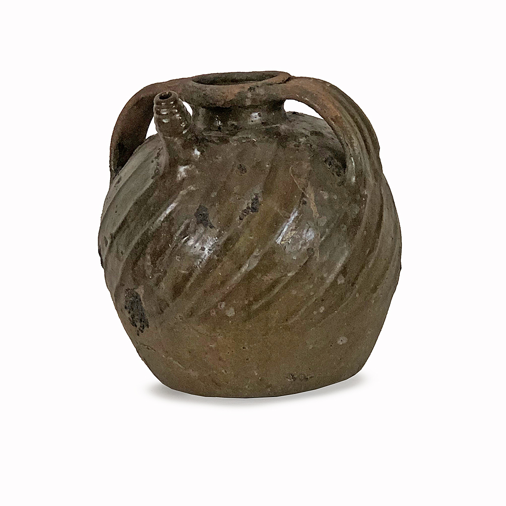 FRENCH DARK GREEN GLAZED POT / EWER WITH TWIN HANDLES AND A SPOUT 18TH CENT 36 CM HIGH