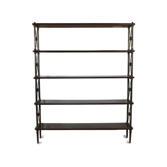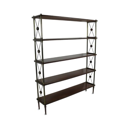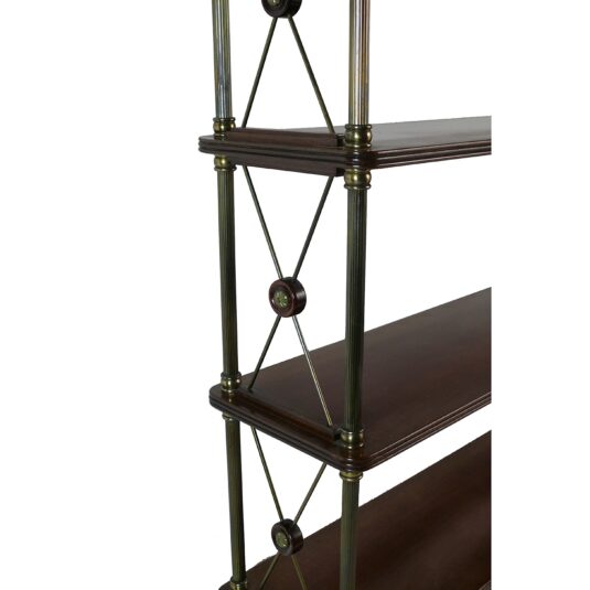 FRENCH DARK MAHOGANY BOOKSHELVES WITH BRASS AND X FRAME ENDS CIRCA 1820 122 CM HIGH 100 CM WIDE 22 CM DEEP