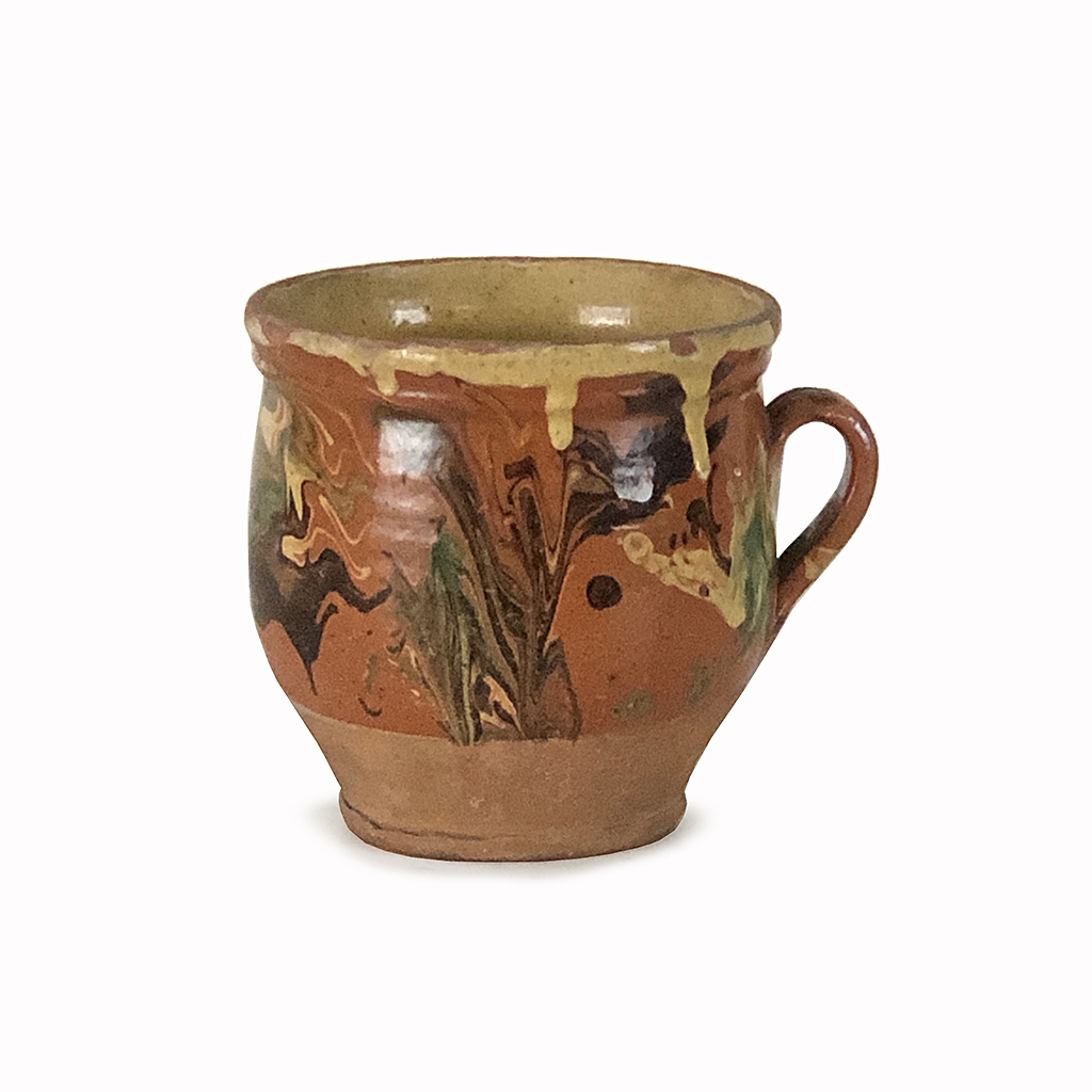 FRENCH EARTHENWARE POT / JUG WITH MARBLED GLAZE 15 CM HIGH