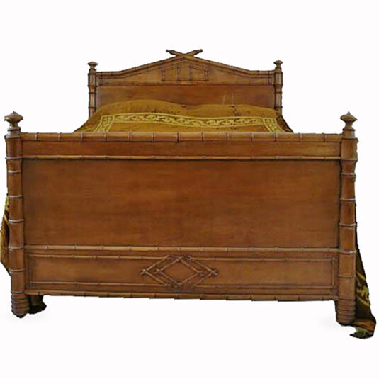 FRENCH FAUX BAMBOO DOUBLE BED COMPLETE WITH SIDE RAILS BASE BOARD AND MATTRESS 5' WIDE