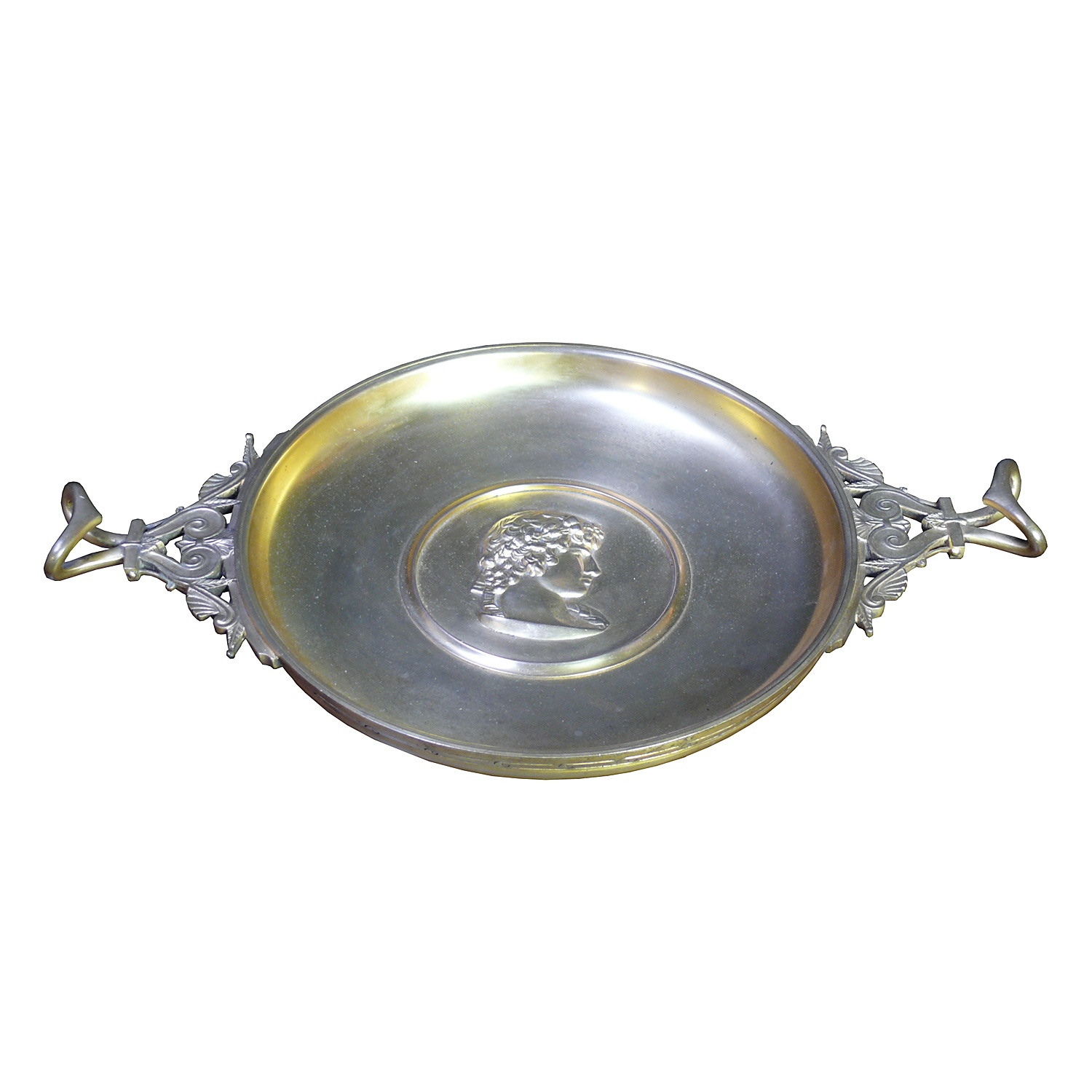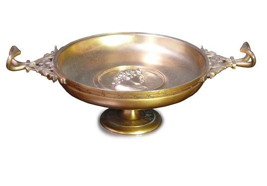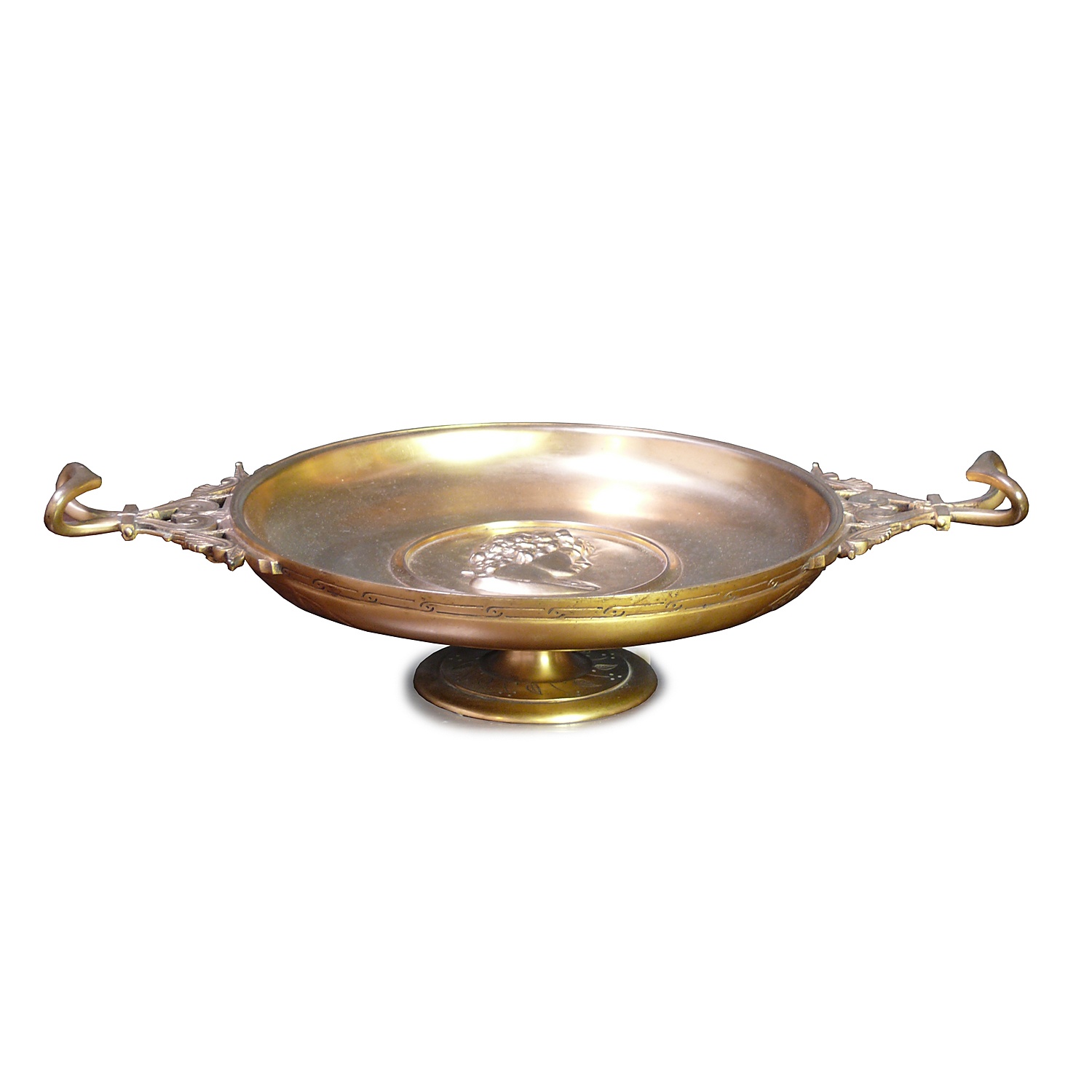 FRENCH GILT BRONZE TAZZA BOWL ETRUSCAN STYLE BARBEDIENNE FOUNDRY 8 CM HIGH 40 CM WIDE 26 CM DEEP