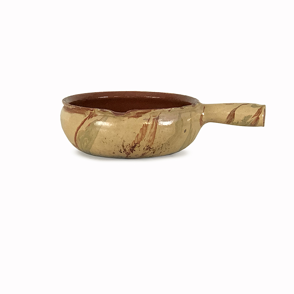 FRENCH GLAZE EARTHENWARE SHALLOW PAN / DISH WITH SIDE HANDLE 22 CM DIAM