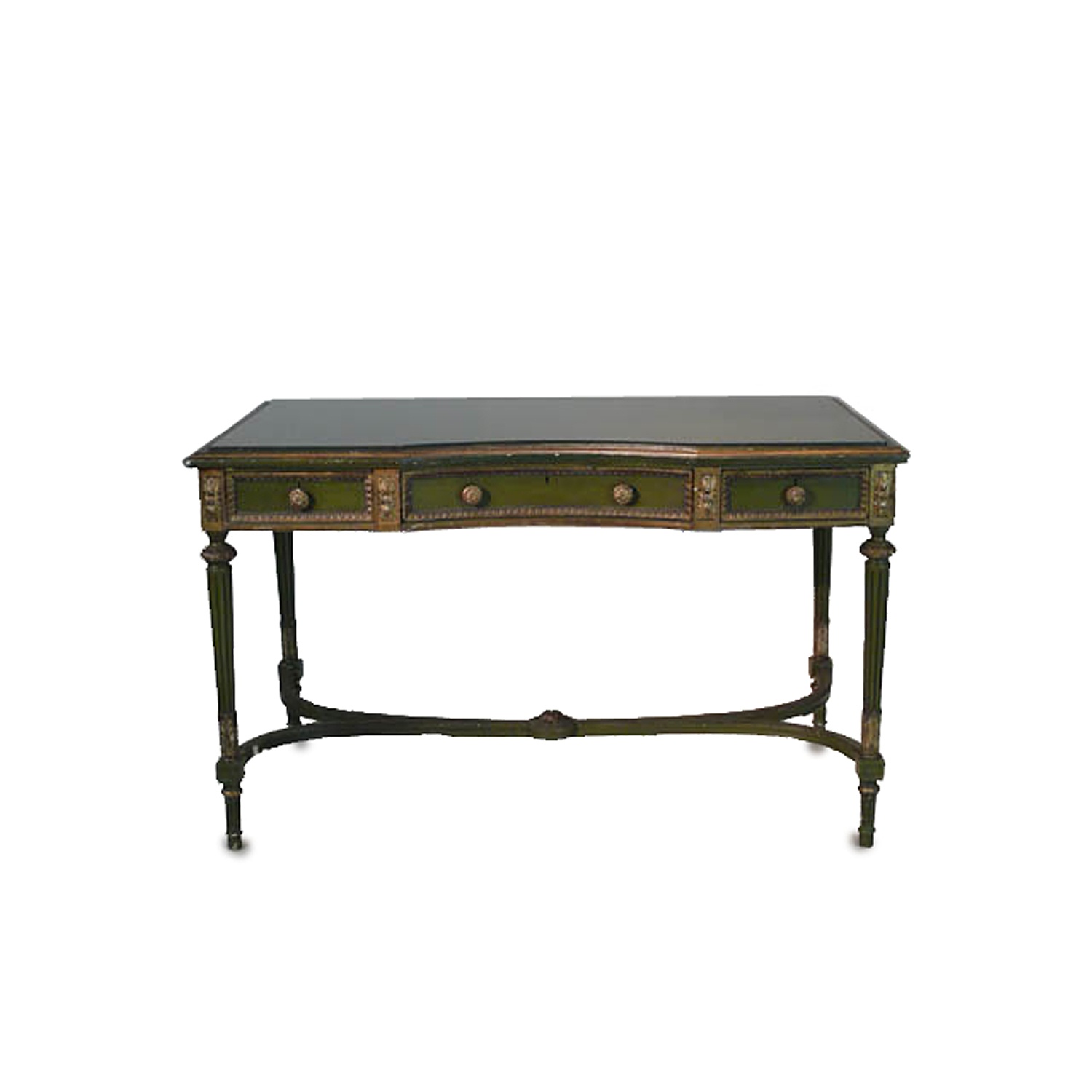 FRENCH GREEN ANTIQUE DRAG FINISH DRESSING TABLE WITH GLASS TOP LOUIS XVI STYLE 2'7/i HIGH 4'2/i WIDE 2'3/i DEEP 79 CM X 127 CM X 69 CM