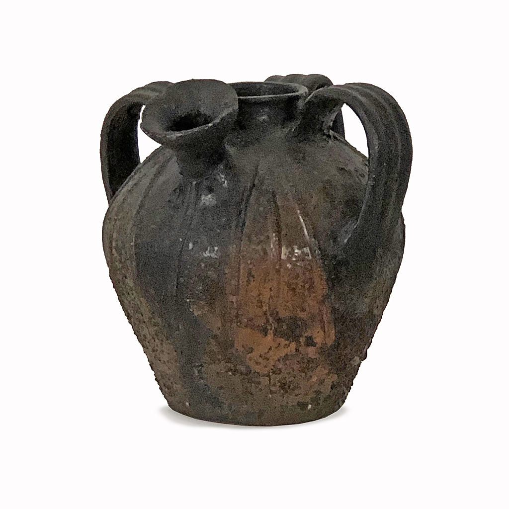 FRENCH LARGE EARTHENWARE EWER / POT WITH BROWN GLAZED WITH SPOUT 18TH CENT 49 CM HIGH