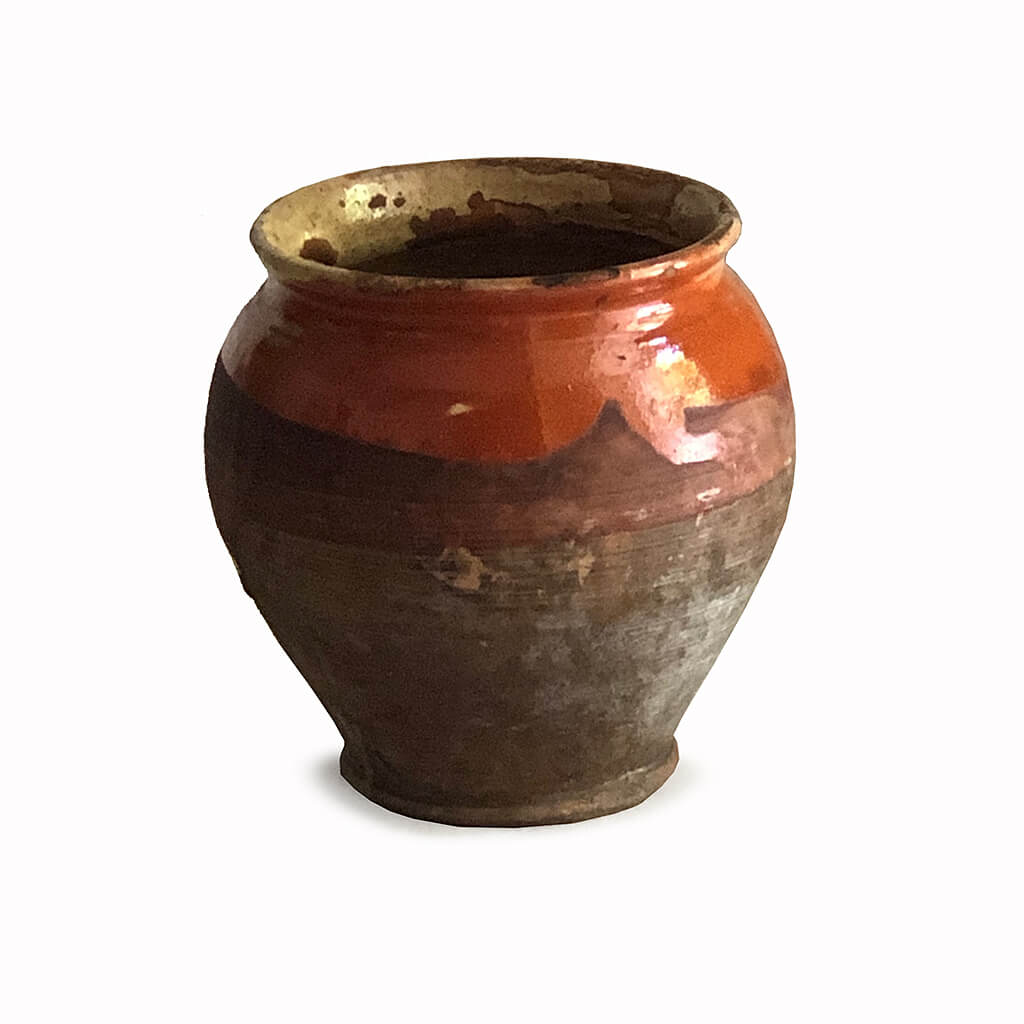 FRENCH MEDIUM BROWN GLAZED STORAGE JAR / POT 13 CM HIGH