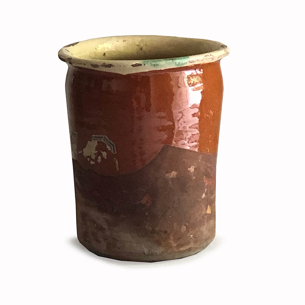 FRENCH MEDIUM CREAM AND BROWN GLAZED JAR / POT 17 CM HIGH