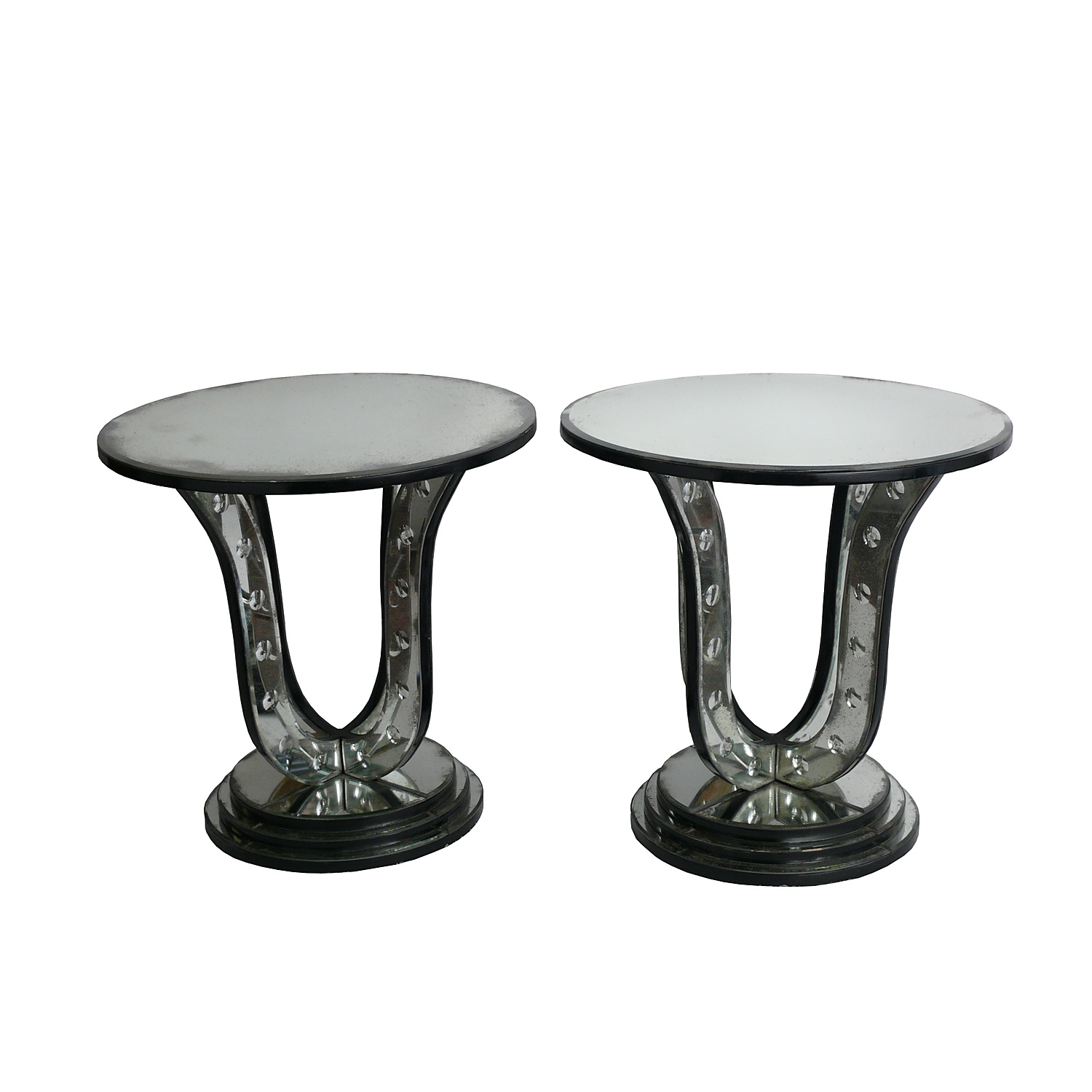 FRENCH MIRRORED LOW OCCASIONAL TABLE CIRCULAR 60 CM HIGH 60 CM DIAM (X2)