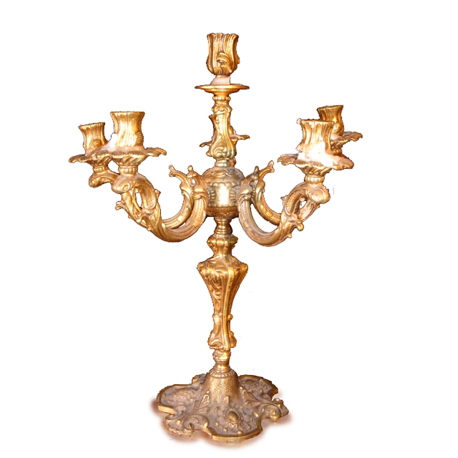 FRENCH ORNATE BRASS CANDELABRA SIX LIGHT 43 CM HIGH 34 CM WIDE (X4)