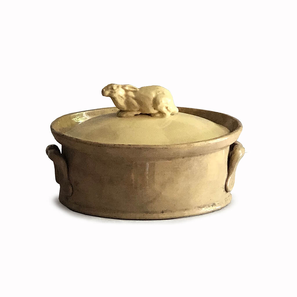 FRENCH OVAL AMBER GLAZED CASSAROLE WITH RABBIT LID 17 CM LONG