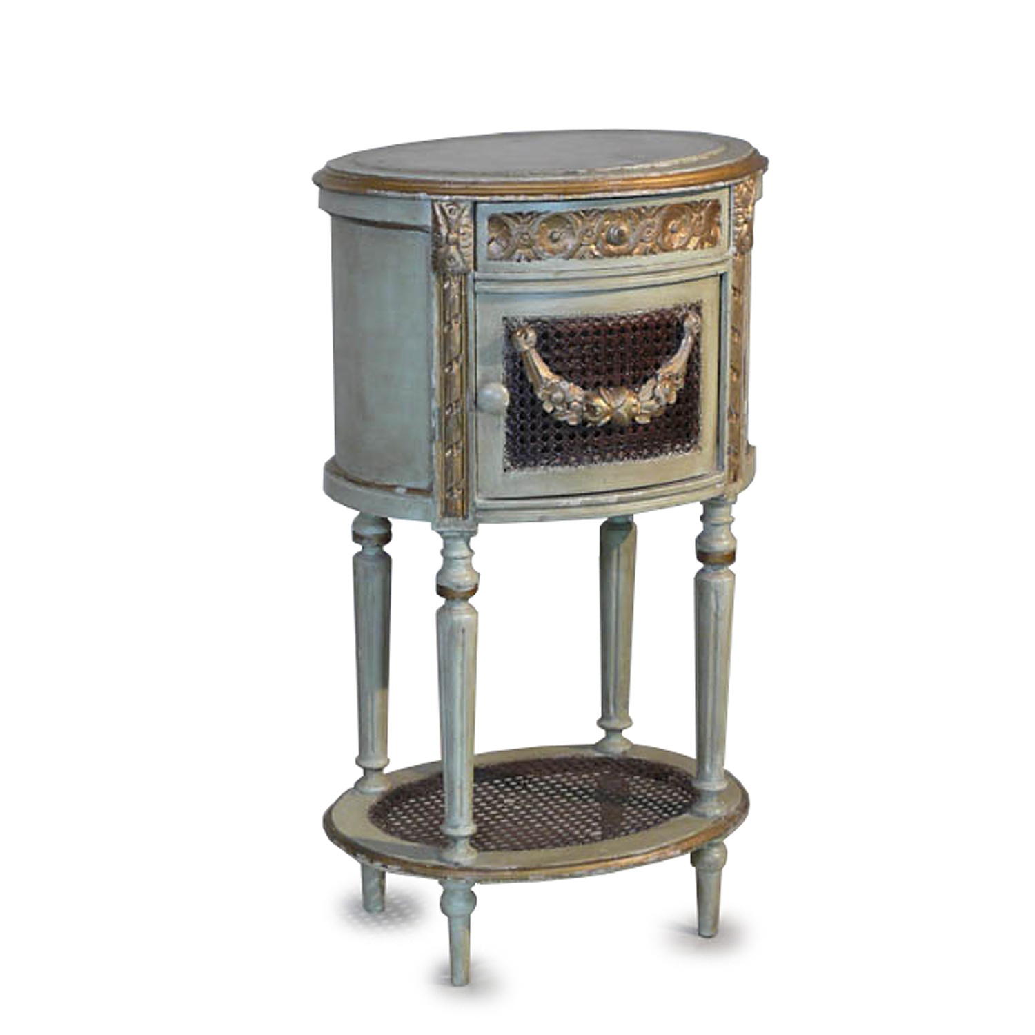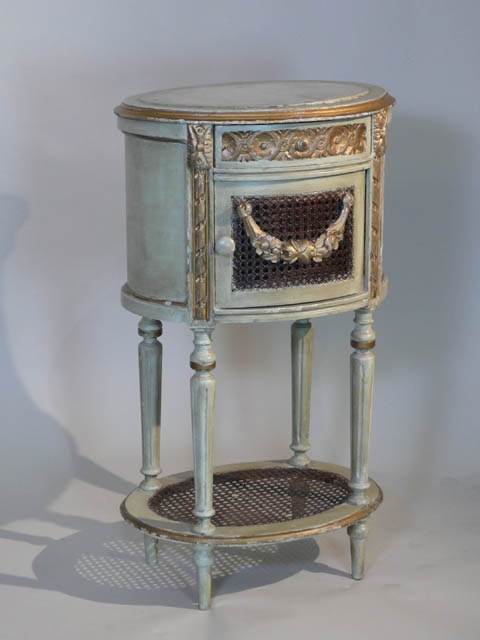 FRENCH OVAL CREAM BEDSIDE TABLE/CUPBOARD RATTAN DOOR 2'9/i HIGH 1'5/i WIDE 1'2/i DEEP 84 CM X 43 CM 36 CM