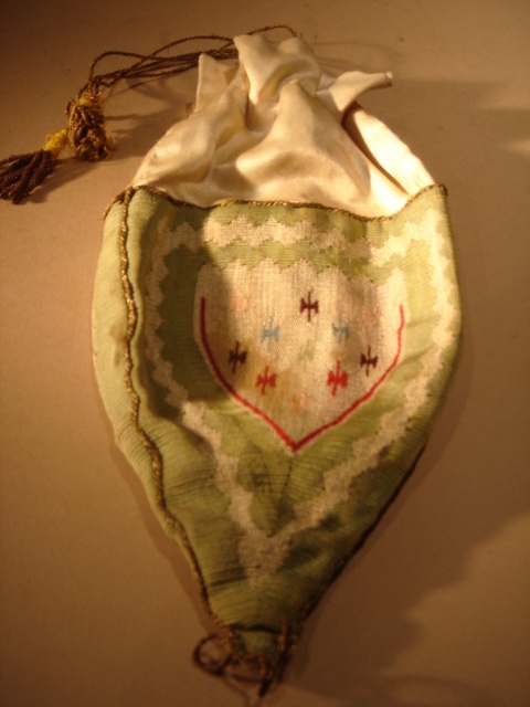 FRENCH PALE GREEN TAPESTRY HANDBAG 13 CM WIDE
