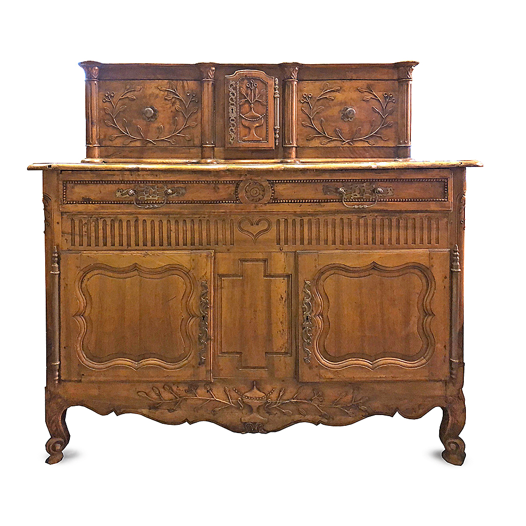 FRENCH PROVINCIAL BUFFET A GLISSANT SIDEBOARD WITH SLIDING UPPER DOORS TWO CUPBOARDS TO BASE CARVED FRUITWOOD 18TH CENT 154 CM HIGH 162 CM WIDE 67 CM DEEP