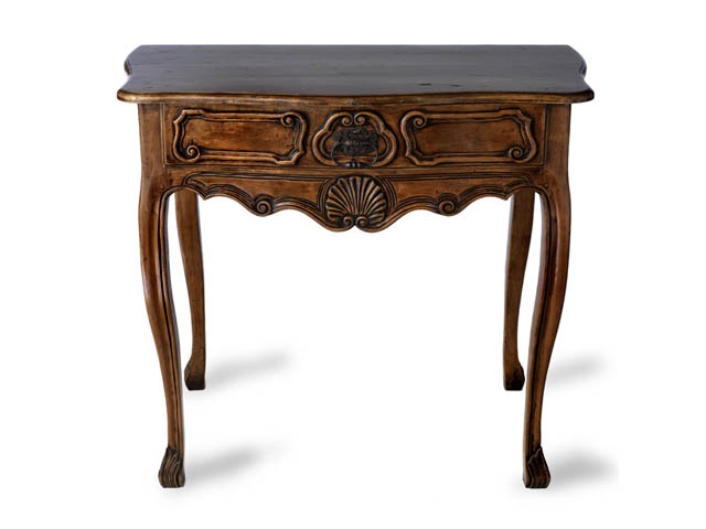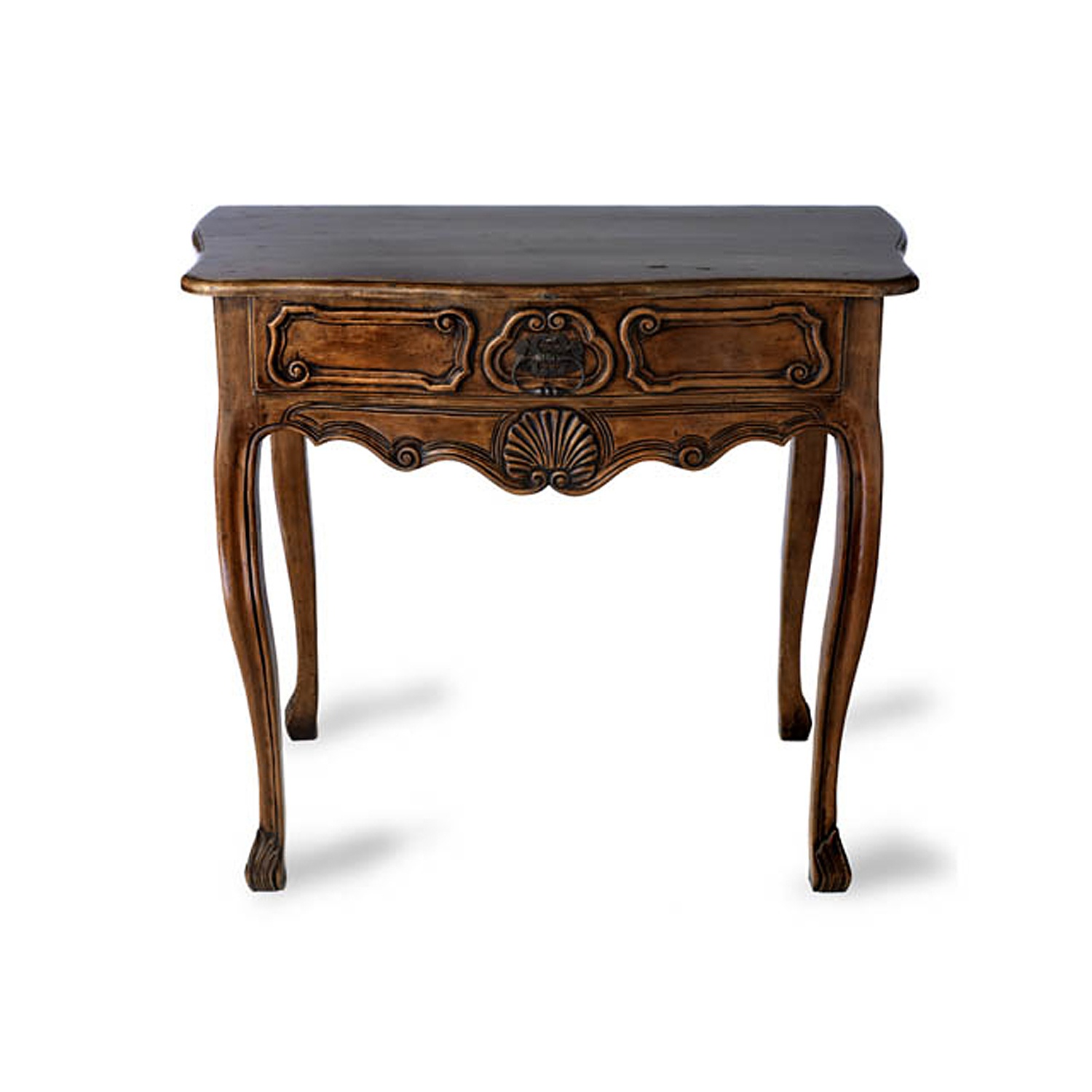 FRENCH PROVINCIAL CARVED FRUIT WOOD SIDE TABLE WITH SINGLE DRAWER 79 CM HIGH X 84 CM WIDE X 53 CM DEEP (X2)
