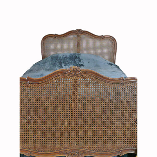 FRENCH PROVINCIAL SINGLE BED WITH RATTAN PANELS PLUS MATTRESS 3' WIDE