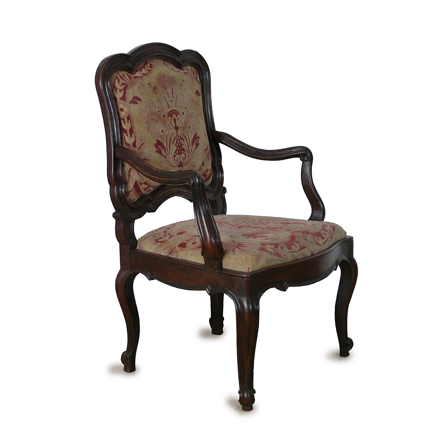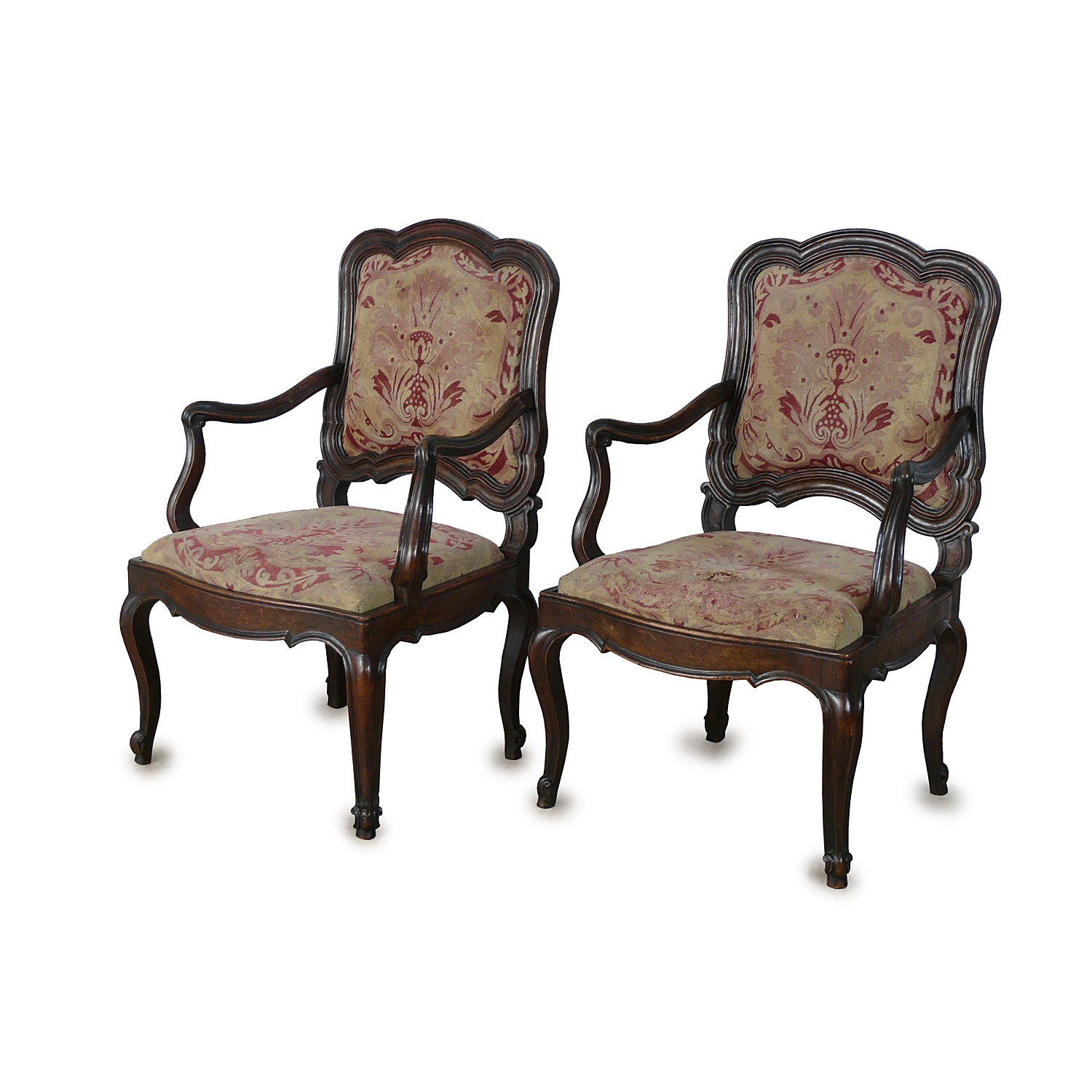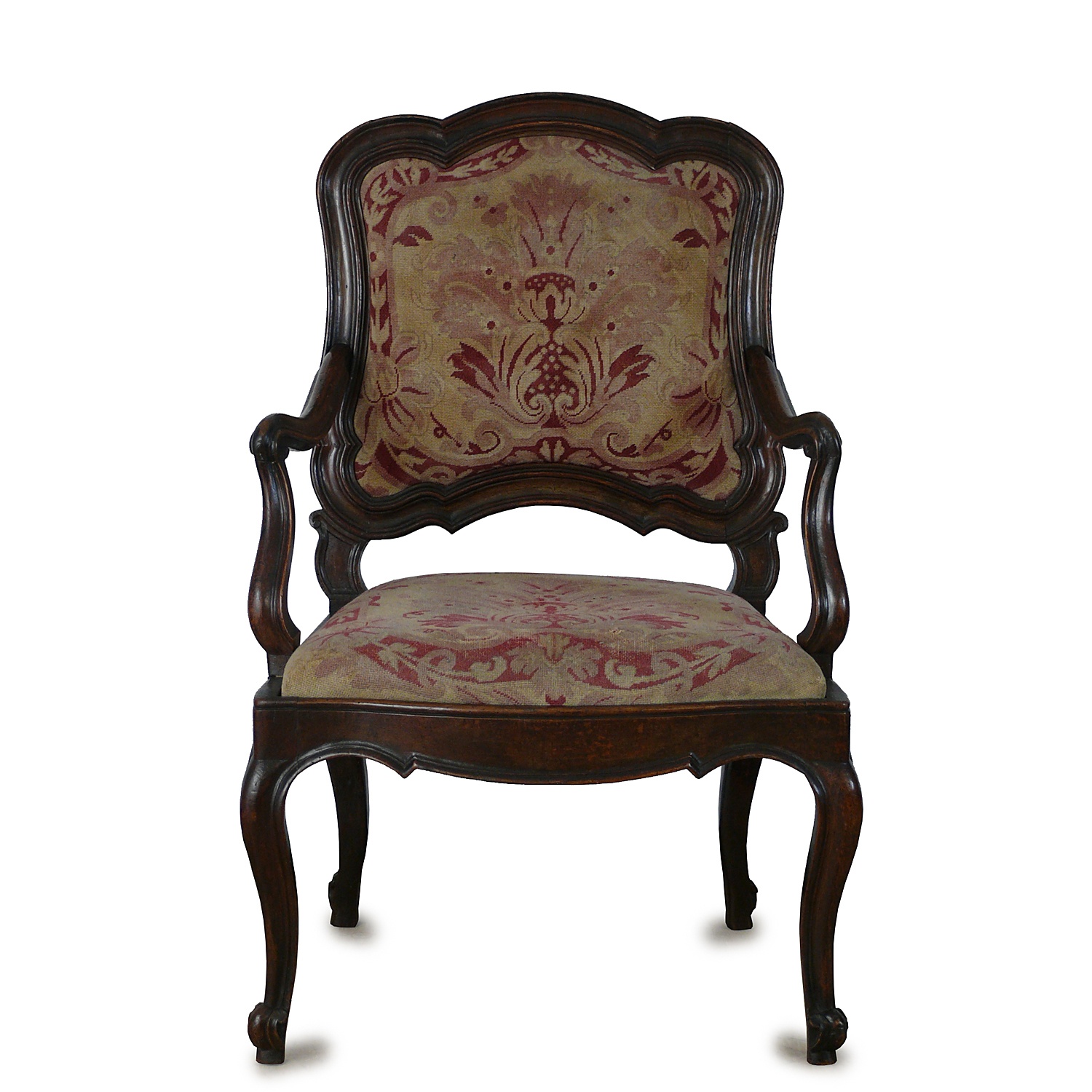 FRENCH REGENCE ARM CHAIR WITH PINK NEEDLEWORK SEAT AND BACK 103 CM HIGH 67 CM WIDE 60 CM DEEP (X2)