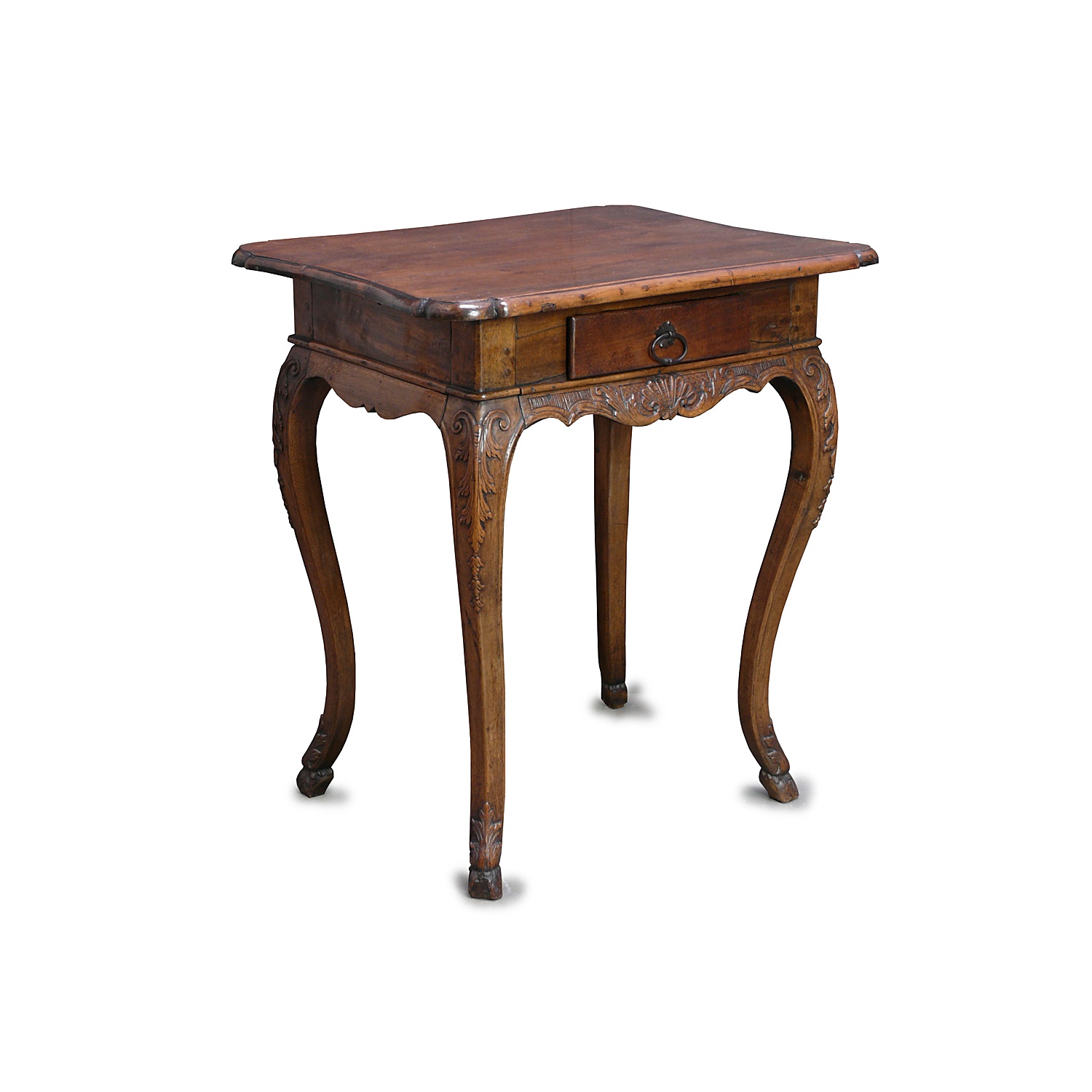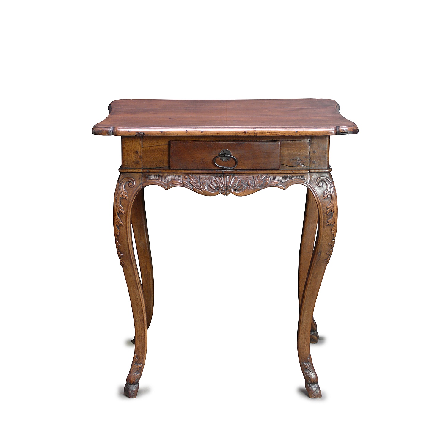 FRENCH REGENCE OCCASIONAL TABLE WITH CARVED LEGS AND A SINGLE DRAWER 75 CM HIGH 68 CM WIDE 53 CM DEEP