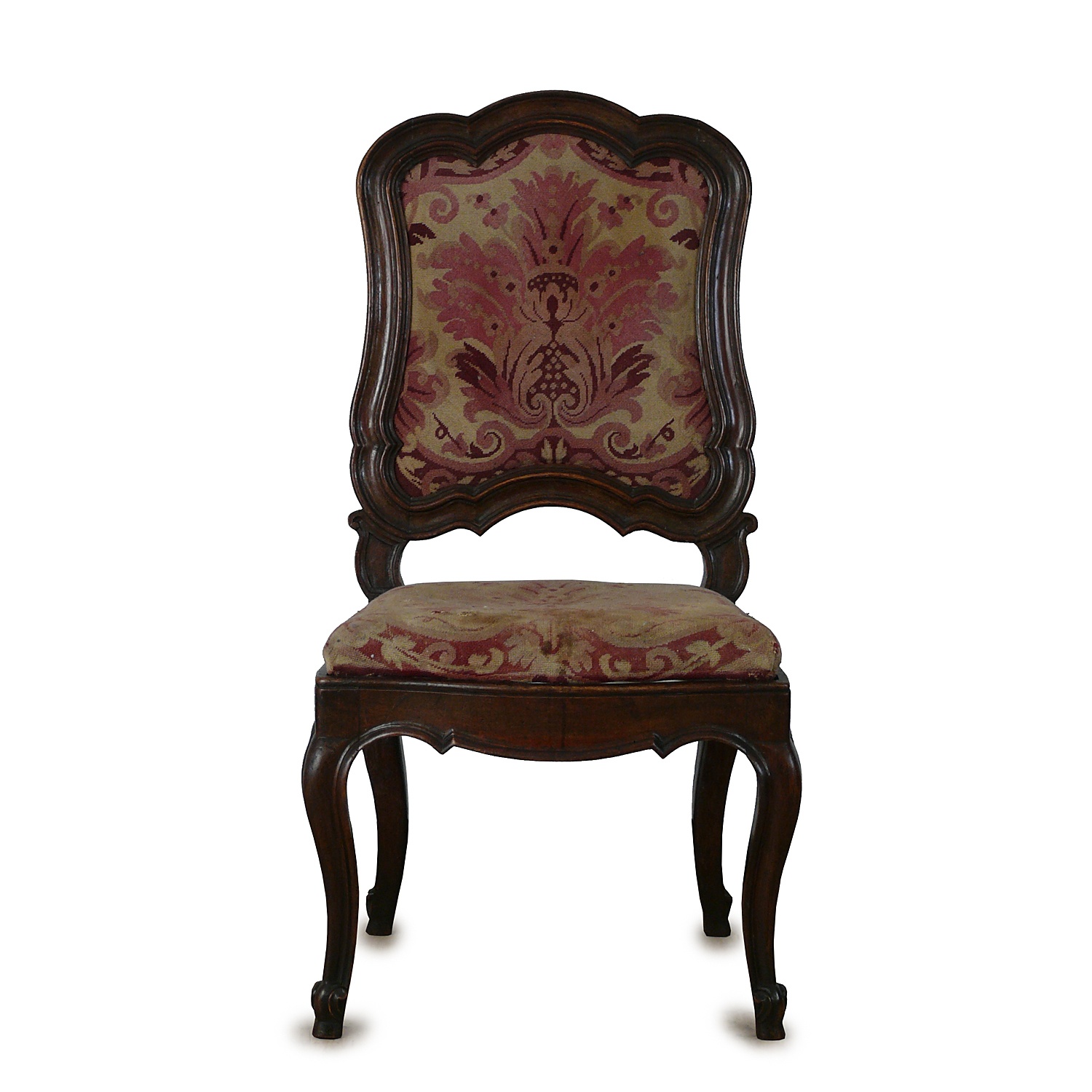 FRENCH REGENCE SINGLE CHAIR WITH PINK NEEDLEWORK SEAT AND BACK 102 CM HIGH 52 CM WIDE 50 CM DEEP (X2)