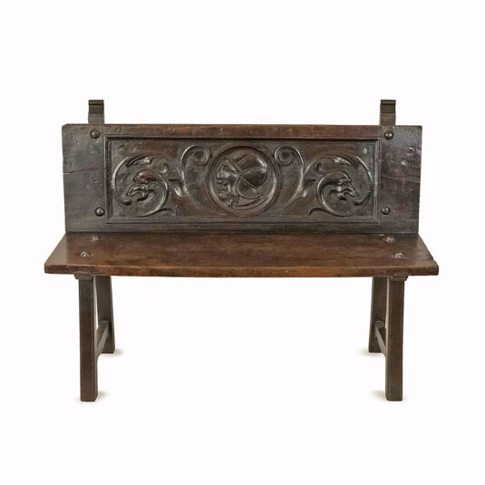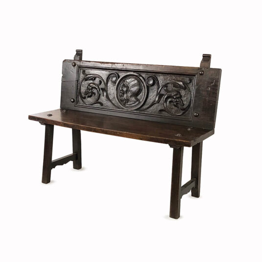 FRENCH RENAISSANCE BENCH CARVED DARK WALNUT 16TH CENT 89 CM HIGH 117 CM LONG 41 CM DEEP