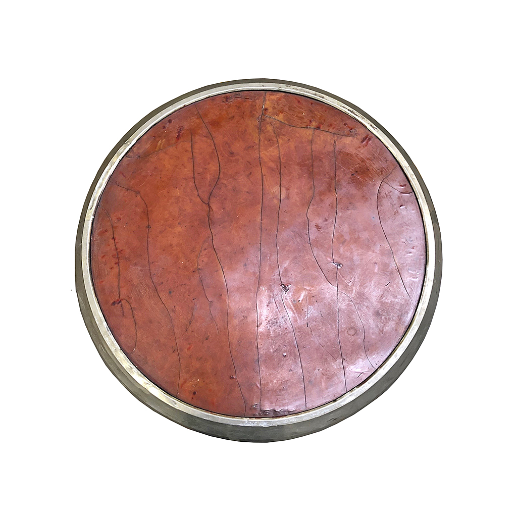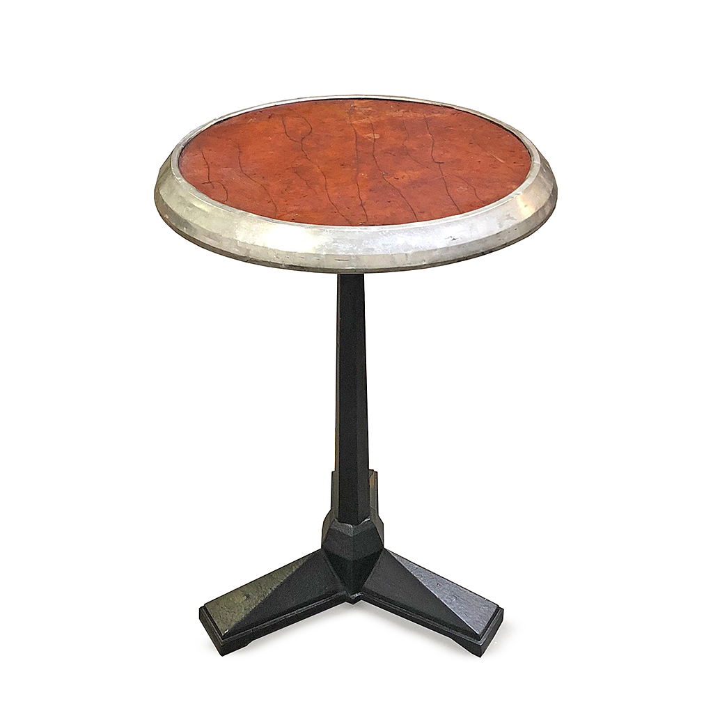 FRENCH SILVER EDGE CIRCULAR AMBER TOP CAFE TABLE DECO BASE 73 CM HIGH X 50 CM DIAM