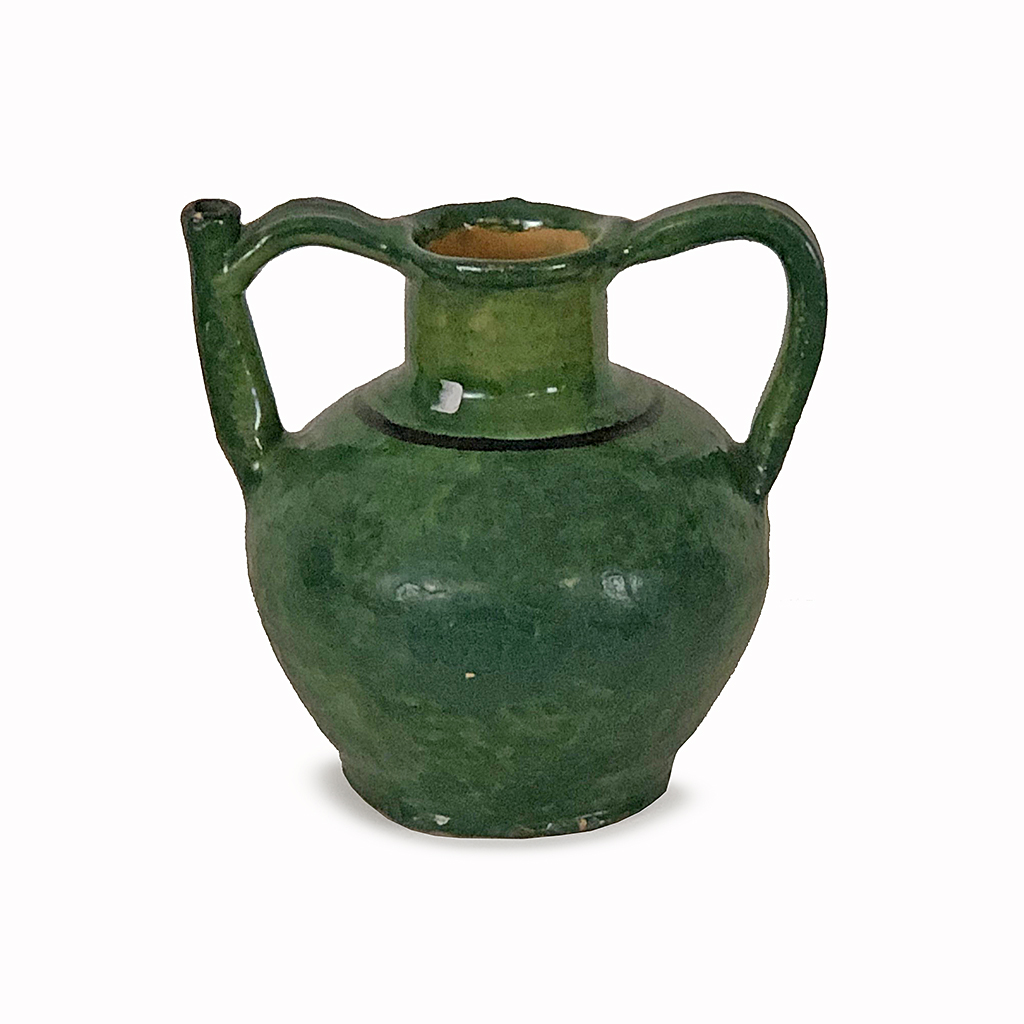 FRENCH SMALL GREEN GLAZED POT EWER WITH SPOUT 19TH CENT 23 CM HIGH