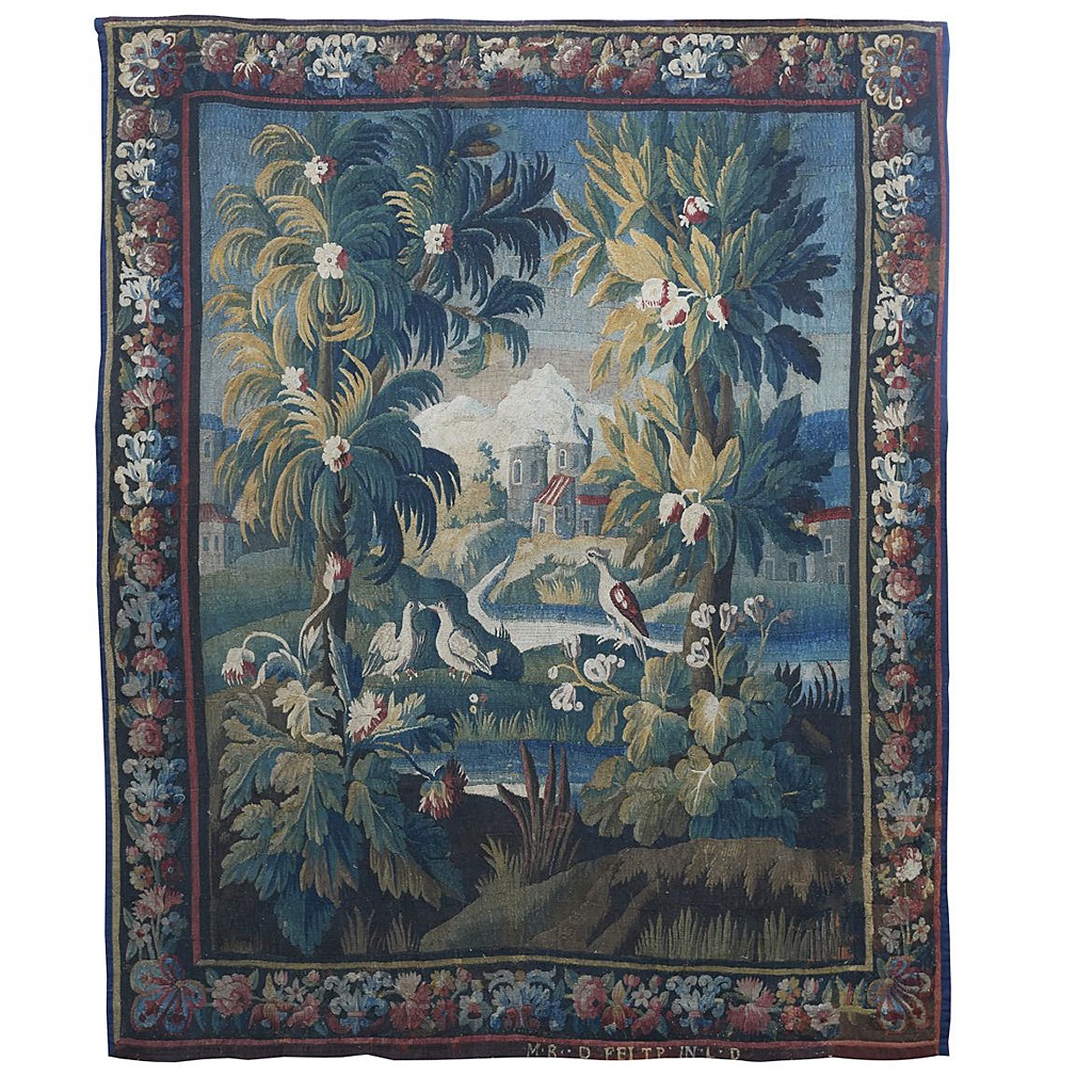 FRENCH VERDURE TAPESTRY OF BIRDS IN A GARDEN SCENE 18TH CENT SIGNED ROYALE DE FILLETIN 284 CM HIGH 227 CM WIDE