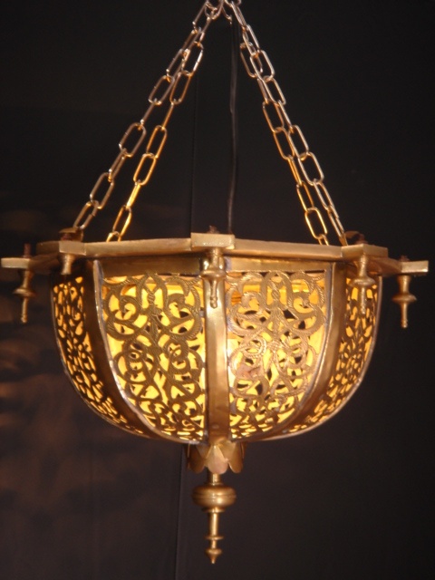 FRETTED BRASS HEXAGONAL ORIENTAL PENDANT LIGHT 10/i HIGH (X4)