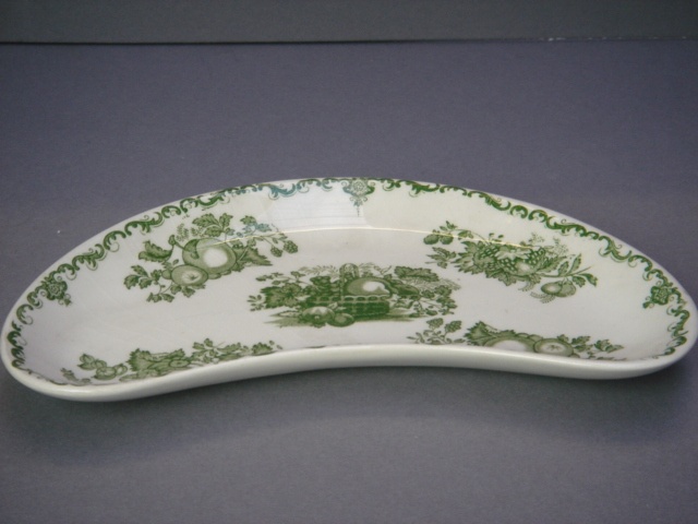 FRUIT BASKET GREEN MASONS CRESSENT SHAPED PLATE