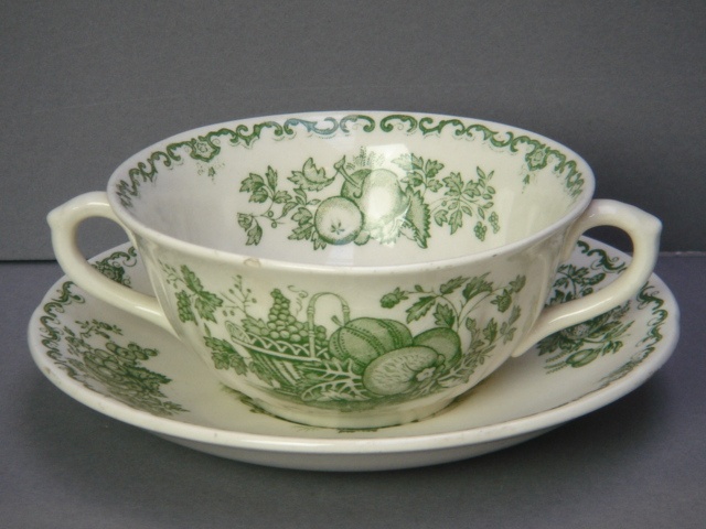 FRUIT BASKET GREEN MASONS SOUP CUP AND SAUCER (X11)