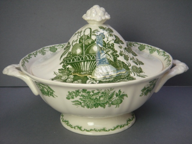 FRUIT BASKET GREEN MASONS VEG. DISH AND LID (X4)