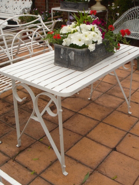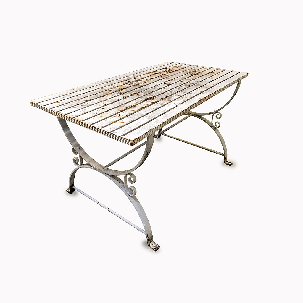 GARDEN TABLE SLATTED WROUGHT IRON REGENCY STYLE OBLONG 75 CM HIGH 128 CM LONG 74 CM WIDE