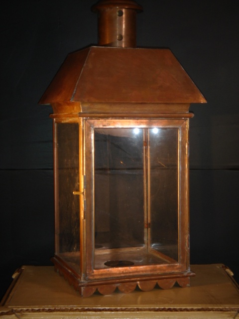 GEORGIAN BRASS PITCH TOP WALL HANGING COACHING LANTERN 26/i HIGH 12/i WIDE (X2)
