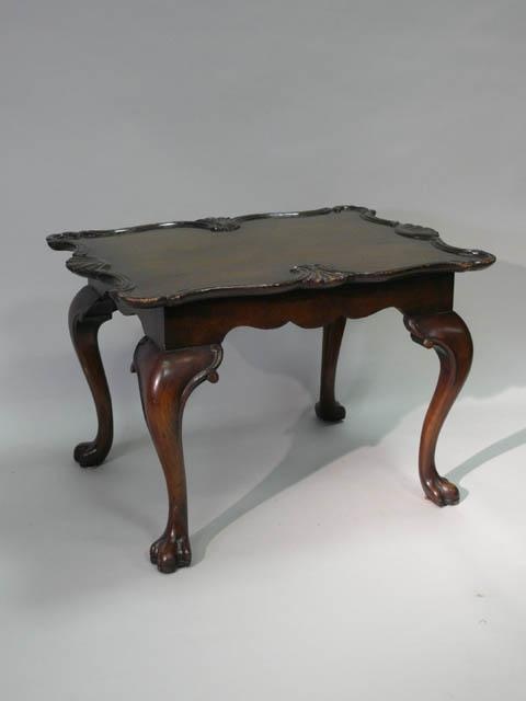 GEORGIAN CARVED SHELL COFFEE TABLE CABRIOLE LEGS 1'8/i HIGH X 2'5/i WIDE X 1'9/i DEEP 51 CM X 74 CM X 53 CM