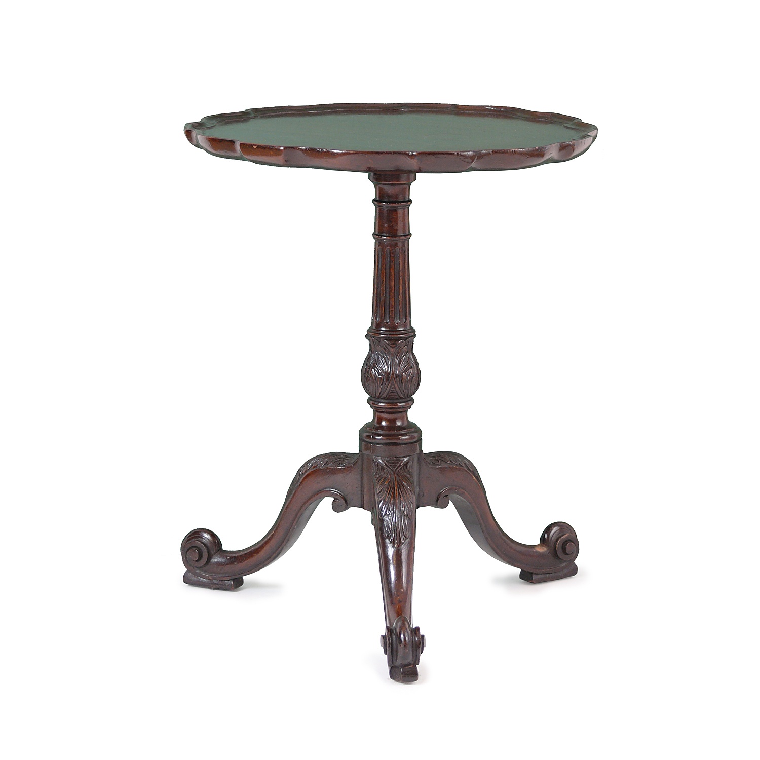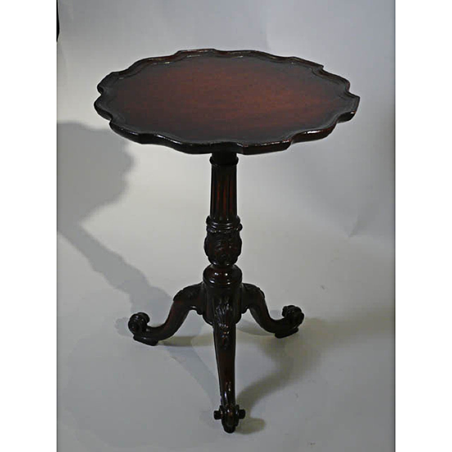 GEORGIAN WINE TABLE CARVED MAHOGANY WITH PIE CRUST TOP 54 CM HIGH 43 CM DIAM