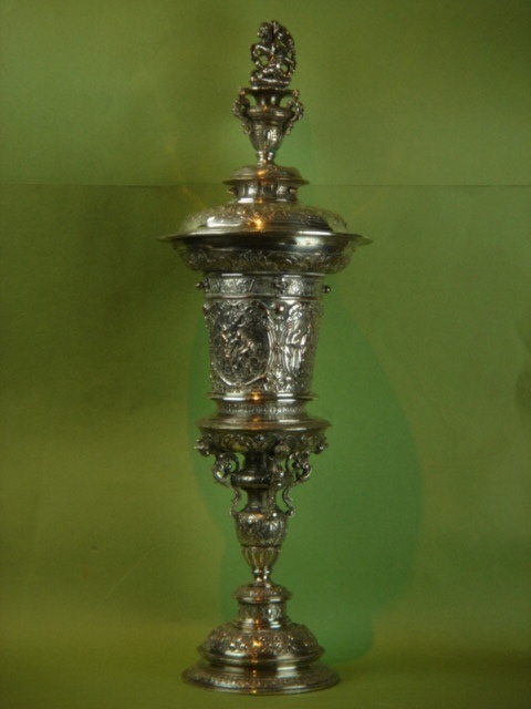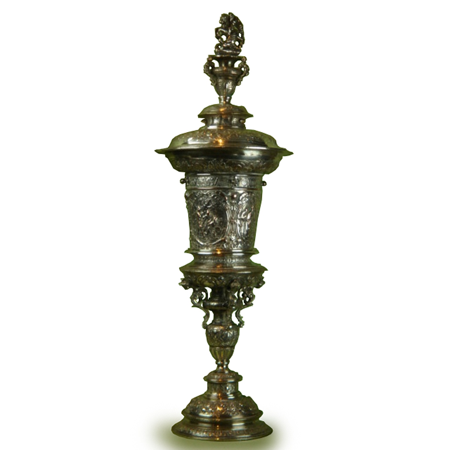 GERMAN CHALICE / CUP AND COVER ORNATE SILVER 19/i 49 CM