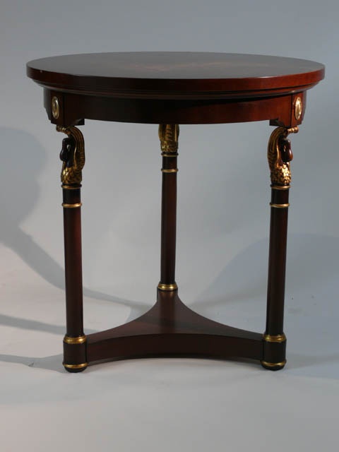 GERMAN EMPIRE STYLE CIRCULAR TABLE MAHOGANY WITH GILT SWAN DECORATION 70 CM DIAM 72 CM HIGH