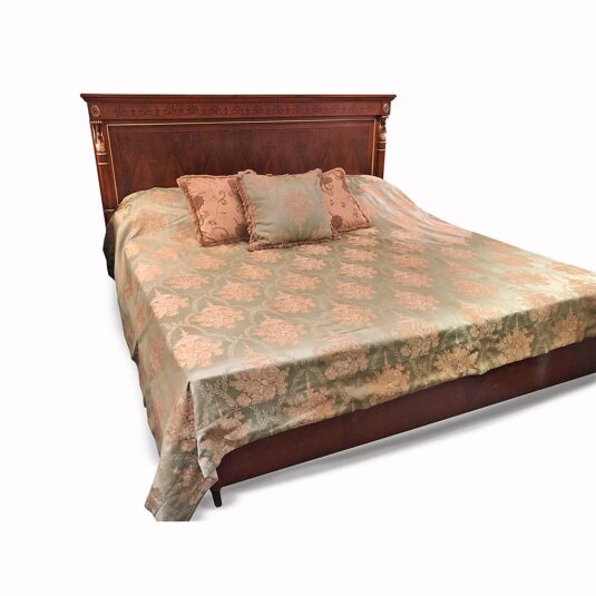 GERMAN EMPIRE STYLE KING SIZE BED MAHOGANY WITH EBONY INLAY AND GILT SWAN DECORATION COMPLETE WITH MATTRESS 125 CM HIGH 220 CM WIDE