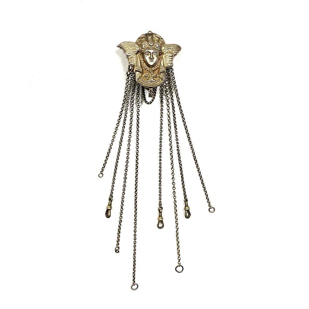 GILT CHATELAINE WITH ANGEL 23 CM LONG