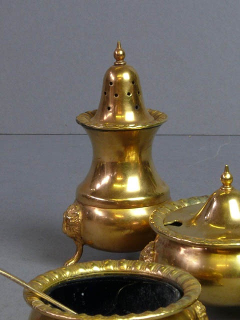 GILT LIONS FEET CONDIMENT SET OPEN SALT / PEPPER POT / MUSTARD POT 11 CM HIGH (X2)