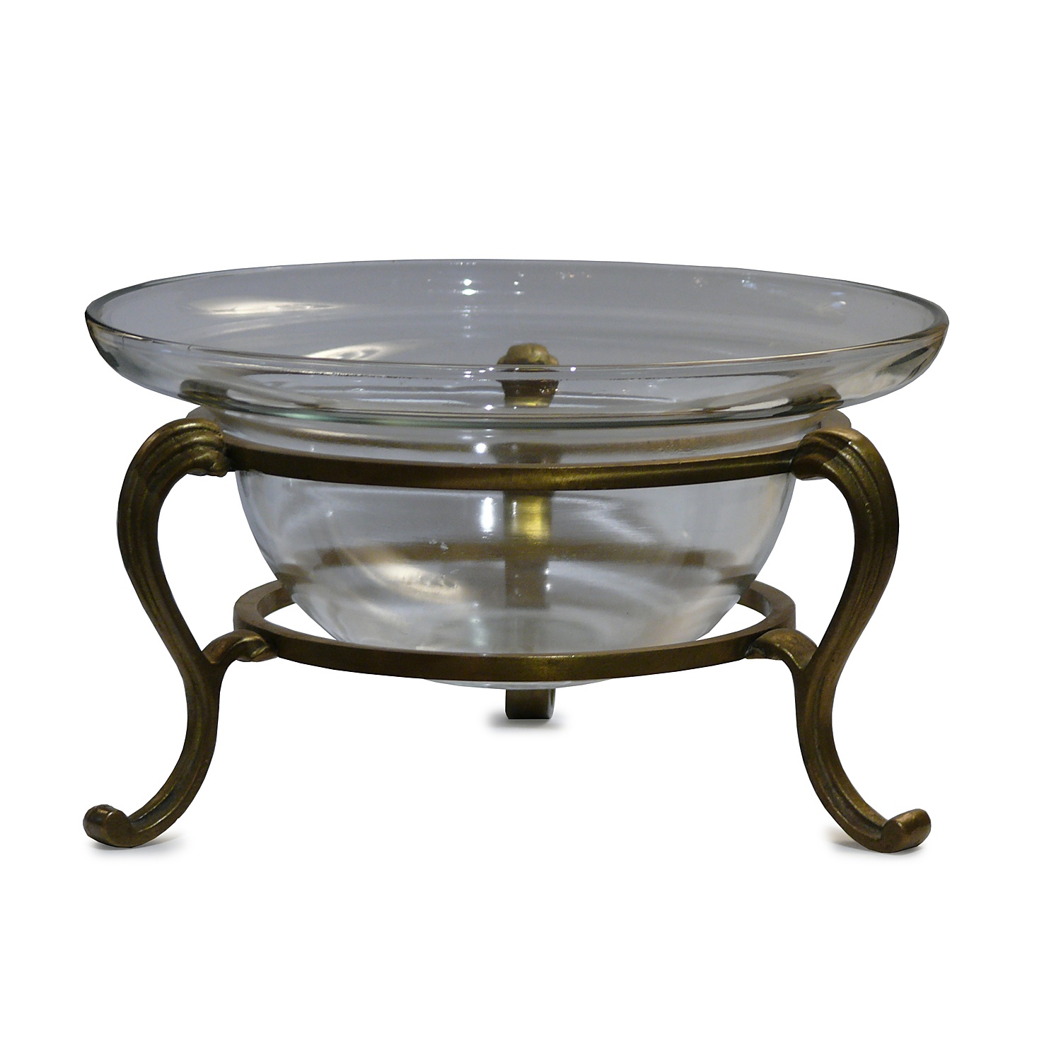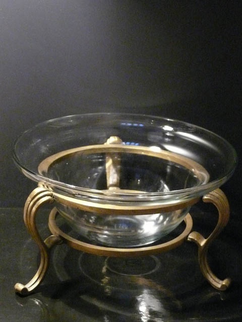 GLASS ROMAN STYLE BOWL / VASE WITH GILT METAL STAND 22 CM DIAM.